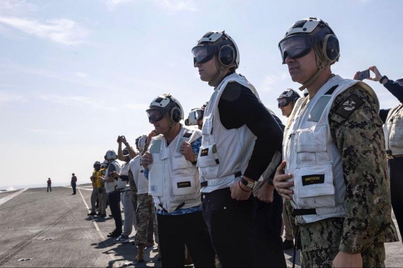 في المقابل، أفاد مراسلون أن مبعوثي الرئيس الأمريكي، ستيف ويتكوف وجاريد كوشنر، زاروا صباح اليوم حاملة الطائرات "أبراهام لينكولن" ضمن تعزيزات عسكرية أمريكية واسعة تشمل ثماني مدمرات، في خطوة لتعزيز الوجود العسكري بالمنطقة.