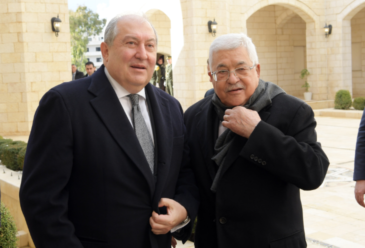 استقبل الرئيس محمود عباس، اليوم الجمعة، نظيره الأرميني أرمين سركيسيان، والوفد المرافق، في قصر الرئاسة بمدينة بيت لحم، جنوب الضفة الغربية المحتلة.