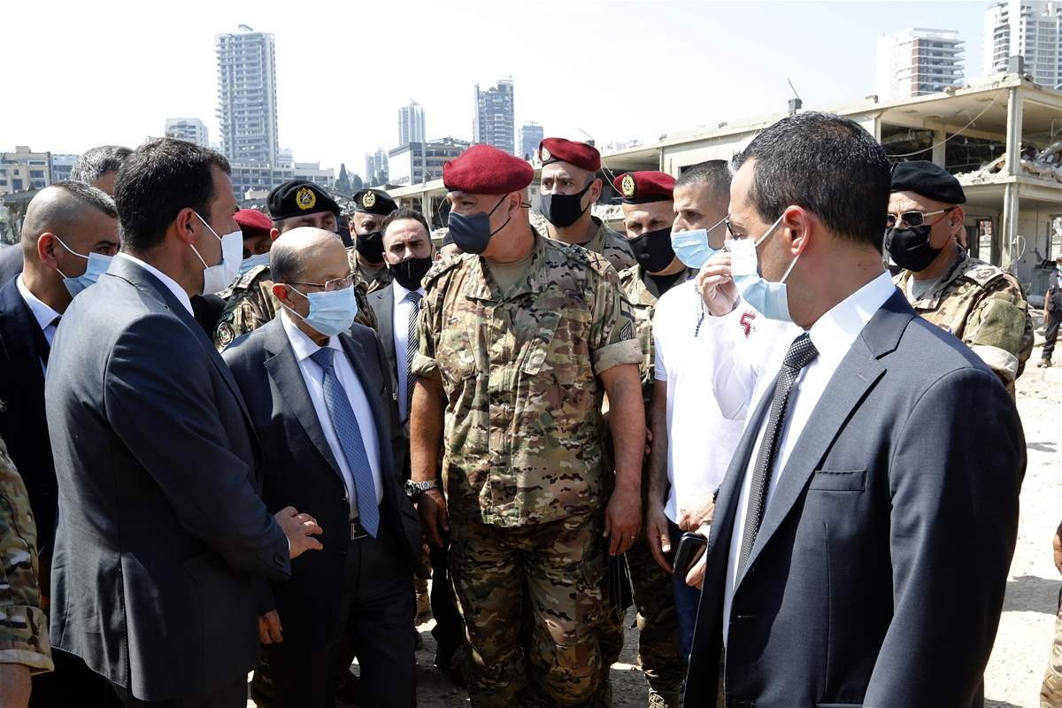 أجرى الرئيس اللبناني ميشال عون، وقائد الجيش اللبناني جوزيف عون، وعدد من ضباط الجيش، اليوم الأربعاء، جولة تفقدية لموقع الانفجار في مرفأ بيروت، والذي أدى إلى سقوط أكثر من 100 شهيدًا وآلاف الجرحى.