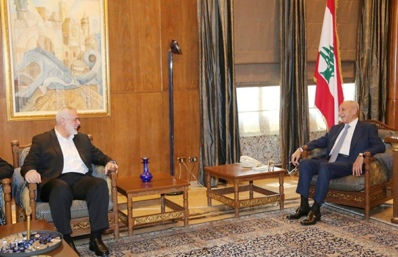 التقى رئيس المكتب السياسي لحركة حماس إسماعيل هنية، اليوم الأربعاء، وفداً من قيادات الحركة ورئيس لبنان نبيه بري، ورئيس مجلس النواب اللبناني، بحثوا خلال اللقاءات آخر التطورات السياسية في فلسطين المحتلة.