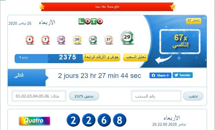 يشار إلى أن لوطو المغرب السحب المقبل سيكون يوم السبت 28 نوفمبر 2020.