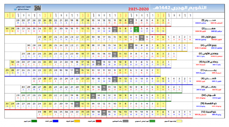 تحميل التقويم الهجري 1442 والميلادي 2021 pdf من خالد الرفاعي اضغط هنا