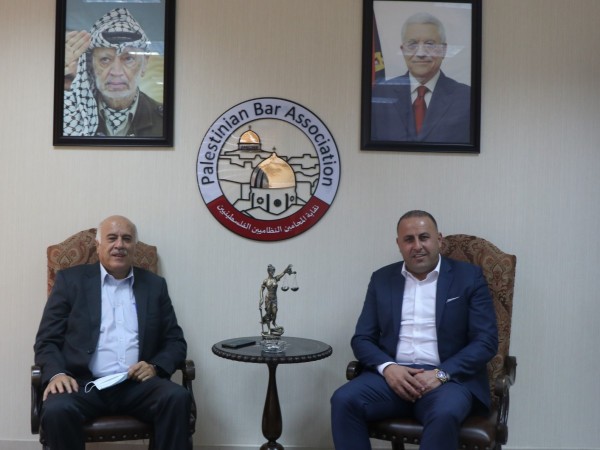 استقبل نقيب المحامين الفلسطينيين المحامي جواد عبيدات وأعضاء مجلس النقابة المحامي أمجد الشلة والمحامي فادي عباس ظهر اليوم الفريق جبريل رجوب في المقر الرئيسي لنقابة المحامين في مدينة رام الله.