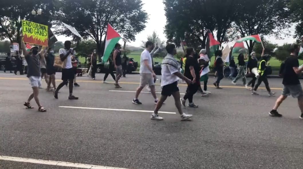 وأكّد المتظاهرون، في بيان لهم، على رفض الإجراءات التعسفية الإسرائيلية بحق الفلسطينيين، داعيين بايدن إلى الضغط على الحكومة الإسرائيلية لوقف انتهاكاتها.