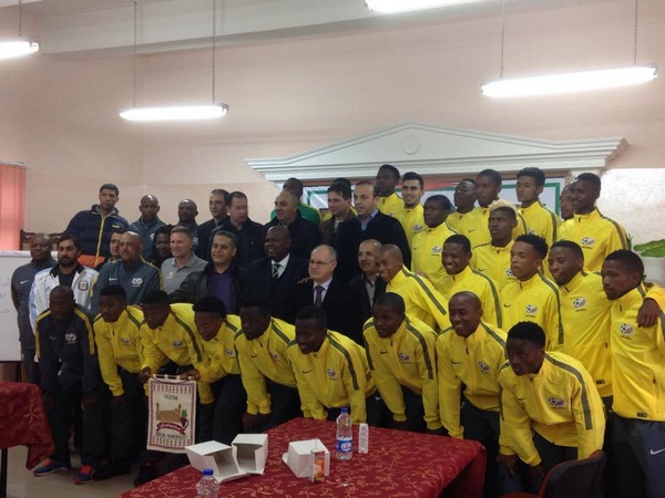 وقام اللواء جبريل الرجوب، رئيس الاتحاد الفلسطيني لكرة القدم بمنح قائد المنتخب الجنوب افريقي كأس المباراة .