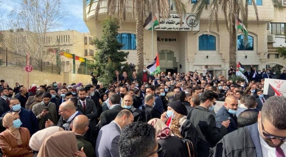 قرر مجلس نقابة المحامين الفلسطينيين، اليوم السبت، الاستمرار بفعالياته الاحتجاجية وتعليق العمل الشامل أمام لكافة المحاكم النظامية والعسكرية والإدارية.