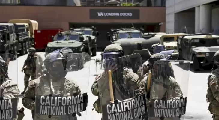 وكان ترمب تعهد الأحد بفرض «القانون والنظام» مع بدء عناصر من الحرس الوطني التمركز في مدينة لوس أنجليس بناء على أوامره، في انتشار نادر ضد رغبة حاكم الولاية، عقب اندلاع احتجاجات اتسم بعضها بالعنف إثر عمليات دهم ضد مهاجرين.