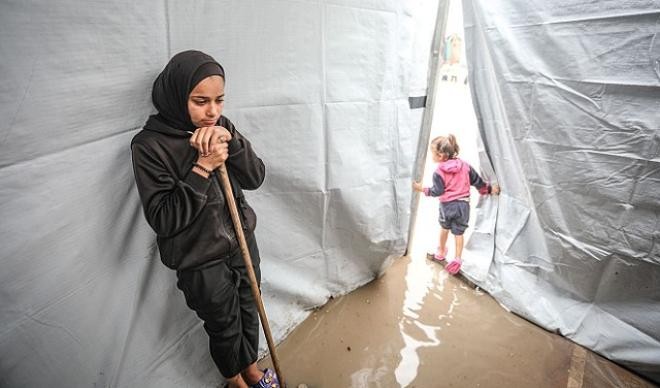 غرق آلاف الخيام وضعف جهود الإغاثة واستمرار الخروقات الاسرائيلية