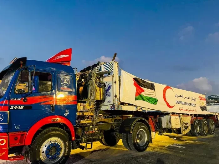 أفاد عبد المنعم إبراهيم، مراسل قناة "القاهرة الإخبارية" من أمام معبر رفح من الجانب المصري، بأن الهلال الأحمر المصري سيّر اليوم الخميس قافلة "زاد العزة الثانية والثمانين"، وهي واحدة من أكبر القوافل التي تسيرها مصر منذ بداية الأزمة.