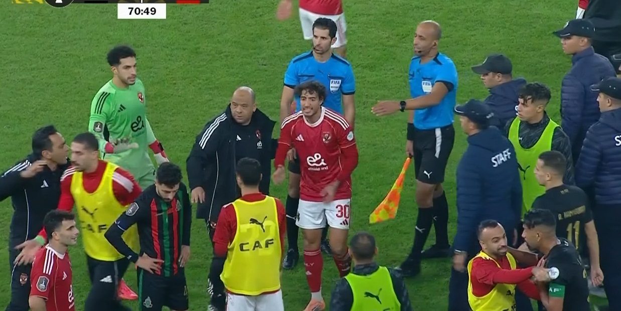 ودخل لاعبو الأهلي والجيش الملكي في مشادة بعدما سجل لاعبو الفريق المغربي هدفا ثانيا ألغاه الحكم بداعي التسلل.