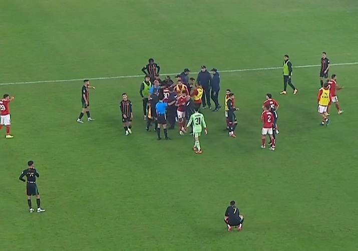شهدت مباراة الجيش الملكي المغربي وضيفه الأهلي المصري مساء أمس الجمعة اشتباكات بين لاعبي الفريقين بعد إحراز الضيوف هدف التعادل.