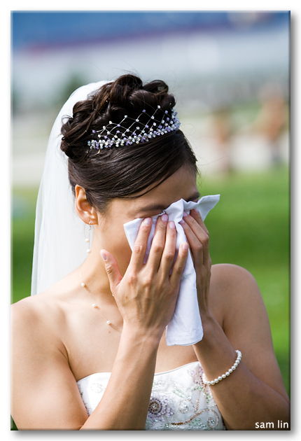 - تنهمر دموع العروس خوفاً من المجهول وتساؤلاتها بشأن ما إذا كانت ستعيش سعيدة مع زوجها.